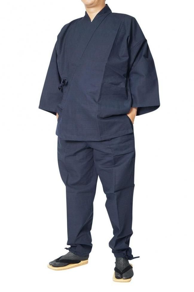 作務衣 メンズ スラブニット織り-作務衣(さむえ)当店オリジナル ストレッチ S〜5L