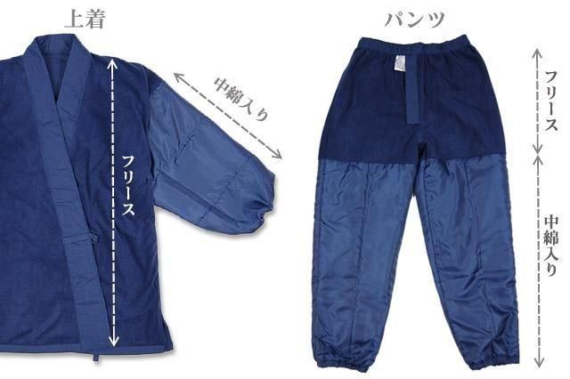 作務衣 冬 冬用 スラブニット織り 裏フリース中綿入り作務衣 極暖 さむえ 当店オリジナル作務衣 S/M/L/LL/3L/4L/5L