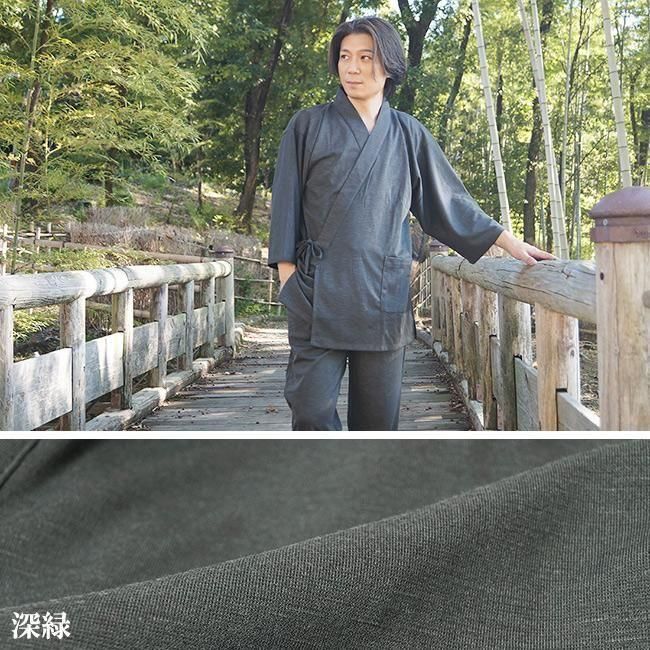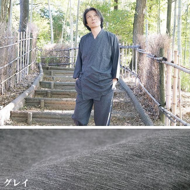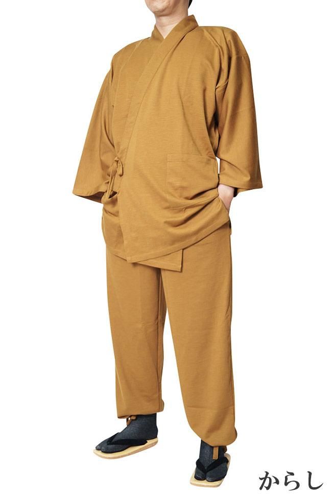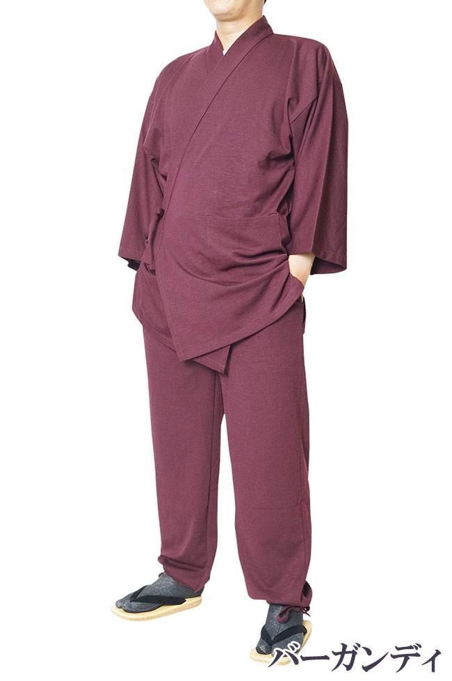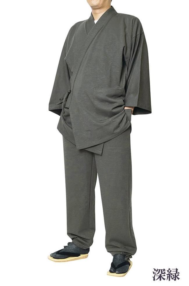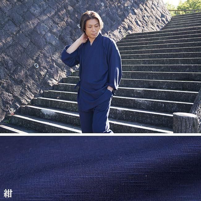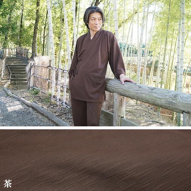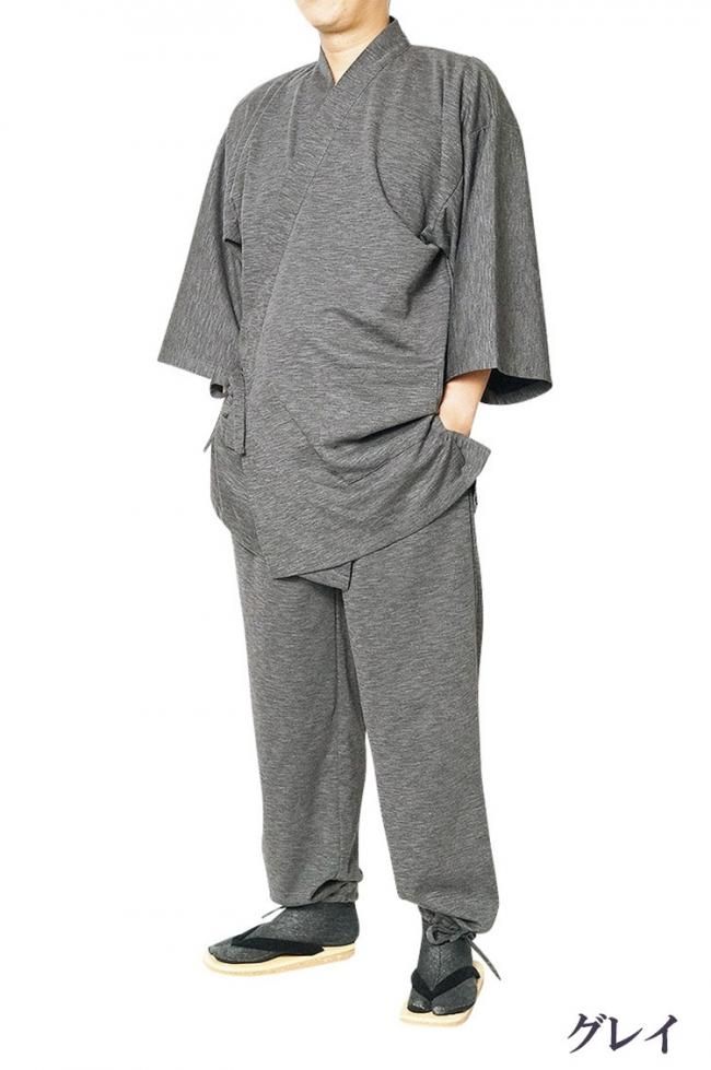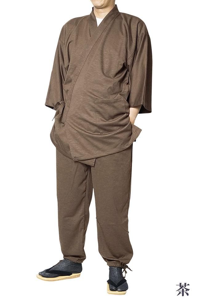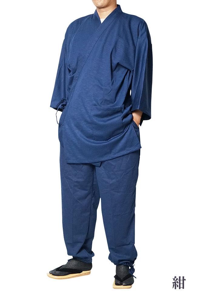 作務衣 メンズ スラブニット織り-作務衣(さむえ)当店オリジナル ストレッチ S〜5L
