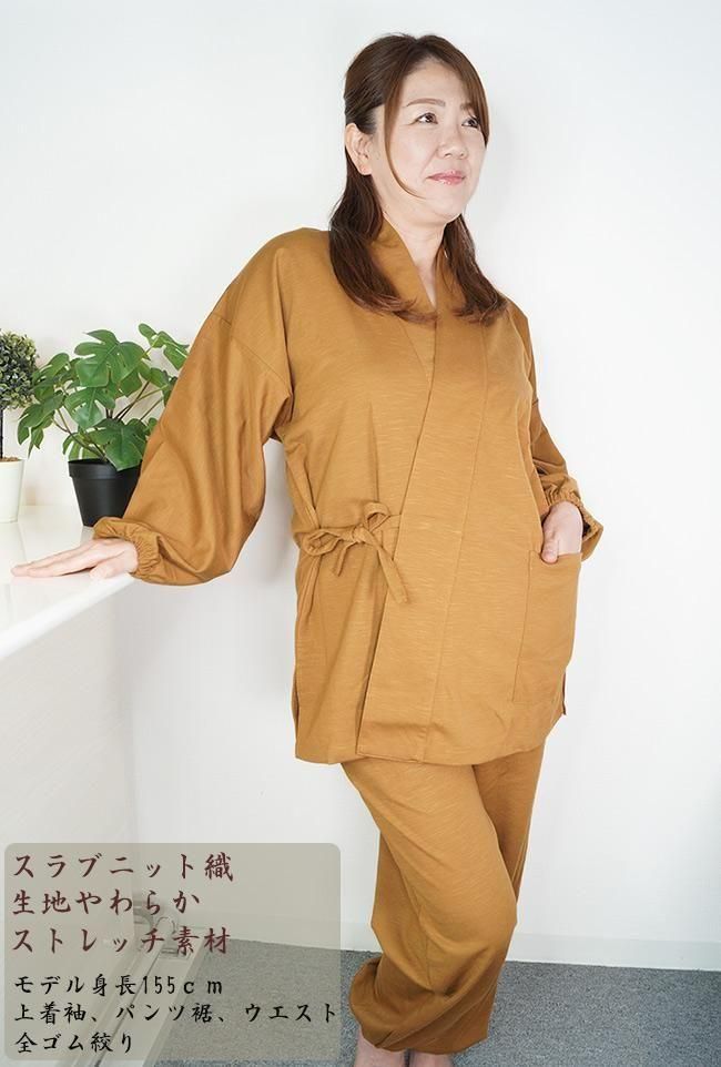 作務衣 メンズ スラブニット織り-作務衣(さむえ)当店オリジナル ストレッチ S〜5L