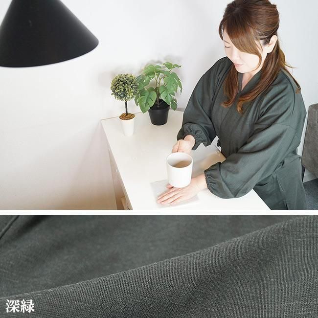 女性作務衣(さむえ)襟のラインがお洒落な紬地のやわらか素材の婦人作務衣